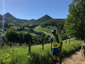 On se rapproche d’Aurillac, et de mon coté tout va très bien. Dans la montée, je trottine puis j’attends Doume en haut en buvant. Puis on repart en courant. Les descentes sont moins techniques mais je reste très crispé car j’ai très peur de me tordre la cheville pour de bon et de devoir m’arrêter là.